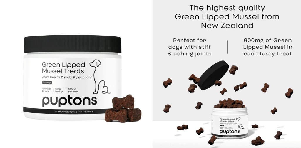 The Green Lipped Mussel found in Puptons’ delicious joint support treats has been sourced entirely from green shelled mussels native to the shores of New Zealand. These mussels are highly prized for their exceptional nutritional qualities and they contain an array of beneficial vitamins, minerals, omega 3 fatty acids, amino acids and all-important glycoproteins. The mussels used to make these Green Lipped Mussel Treats For Dogs are of the absolute highest quality available and are bursting with important nutrients to support your dog’s joint health. (Get 10% off with code WOOFABILITY)
