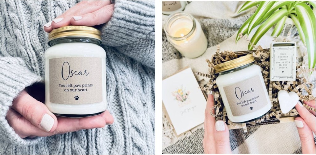 You Left Paw Prints On Our Heart Candle Set – Handmade candle and keepsake gift to show you care to someone going through a tough time of grief, loss or remembrance for a lost loved pet.