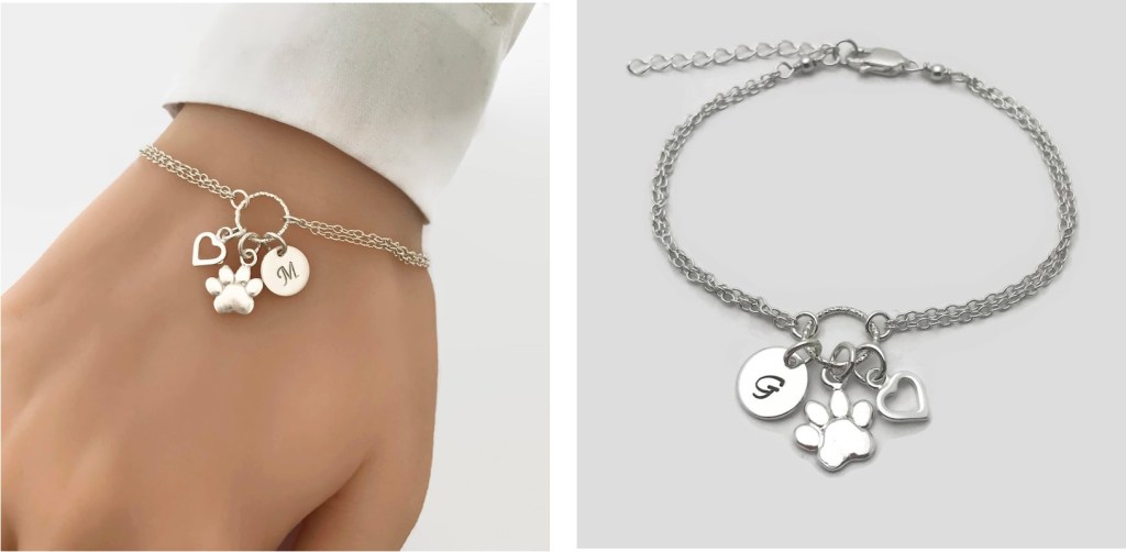 Sterling Silver Paw and Initial Charm Bracelet – A lovely way to carry your beloved canine companion with you every day or as a gift for a loved one.