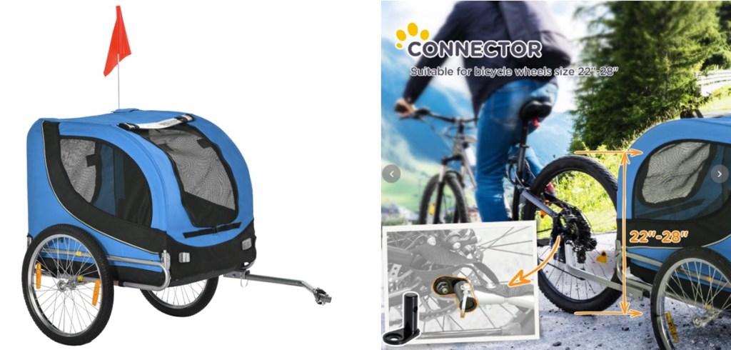 The PawHut Steel Dog Bike Trailer is ideal for getting dogs who find it hard to walk, out and about, easily attaches to your bike, includes an internal safety anchor for belt attachment. The bike trailer for dogs ensures a strong and reliable structure for reassurance when riding on the roads. Made from Oxford fabric with a PU cover for light weather resistance, there is plenty of room in the dog cart for comfort. The cycle trailer allows air to circulate whilst inside, with zip fastenings for easy access in and out.