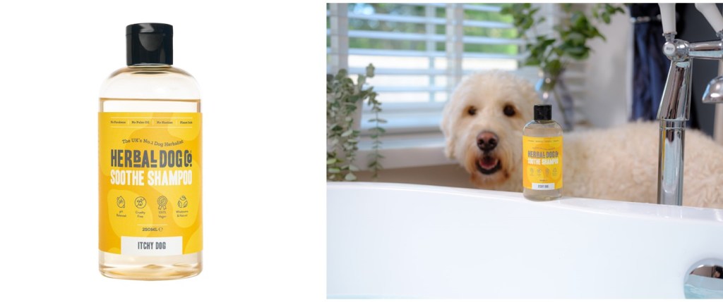 Herbal Dog Co.’s Natural Itch Relief Sooth Shampoo is formulated to help support your dog’s itching, soothe their skin and nourish their coat. Effective relief from itchy skin, bites, and allergies. With anti-bacterial and anti-viral properties that act in seconds to relieve symptoms. Fragrance-free and safe for pets with sensitive skin, with fast-acting relief from itching.